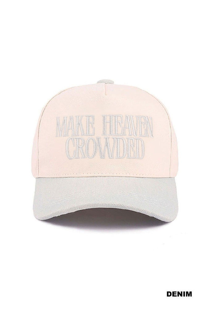 MAKE HEAVEN CROWDED TWO-TONE CANVAS COTTON CAP -"MAKE HEAVEN CROWDED" TWO-TONE CANVAS -TRENDY DESIGN -ALL SEASONS -VERSATILE STYLE -ADJUSTABLE STRAP WITH METAL BUCKLE -LIGHTWEIGHT AND BREATHABLE MATERIAL