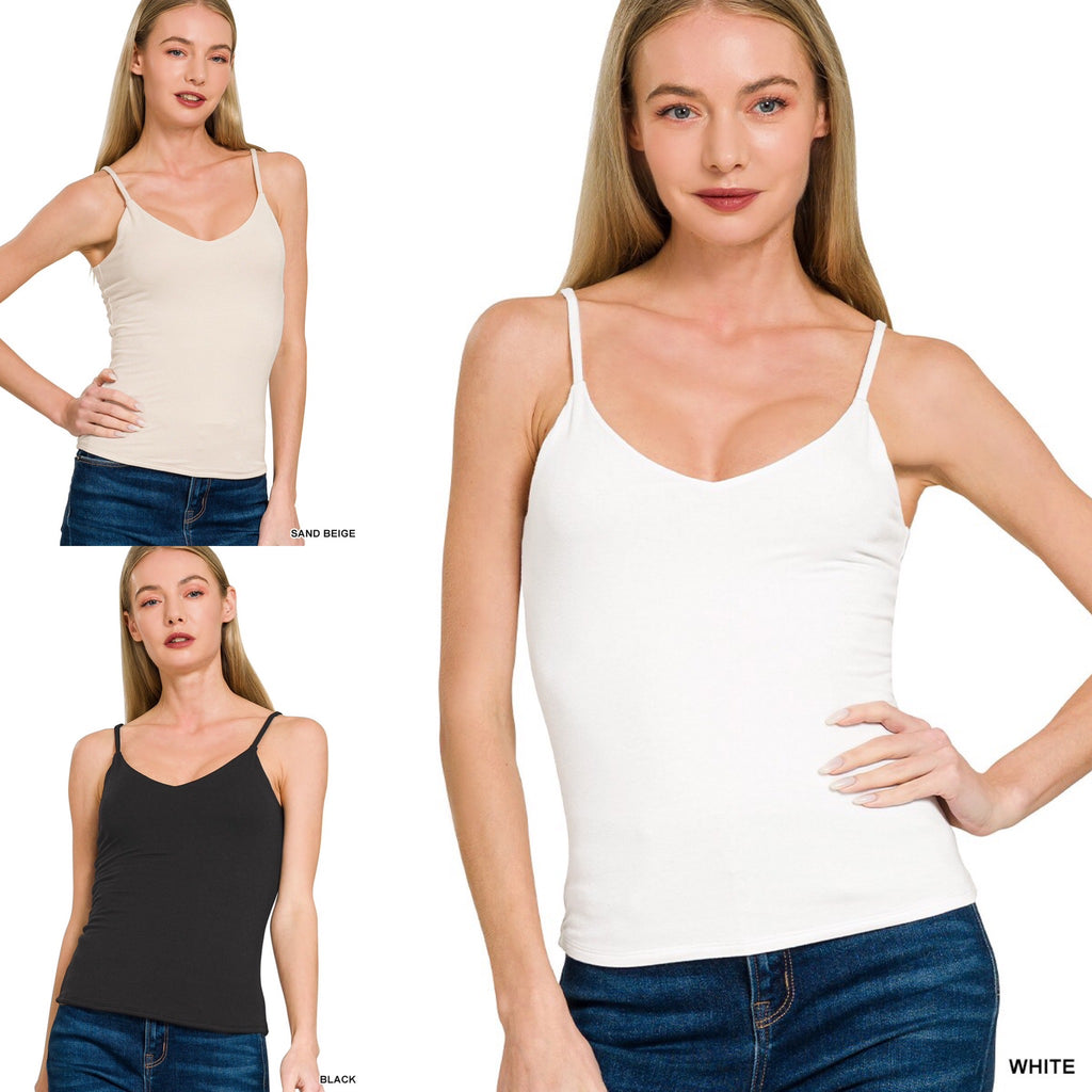 DOUBLE LAYERED V-NECK SPAGHETTI CAMI TOTAL BODY LENGTH (HIGH POINT BUST): 16.5", BUST: 27.5" approx. - MEASURED FROM SMALL