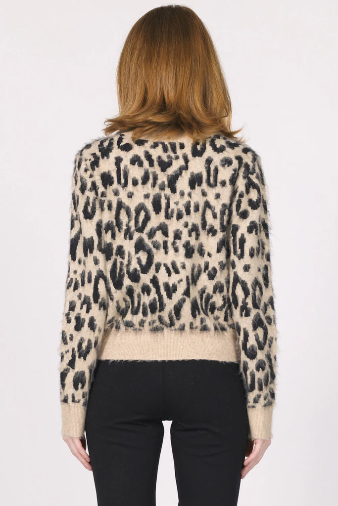 Mina long sleeve leopard print sweater, crafted with a blend of premium yarn. Timeless crew neck is effortlessly chic and versatile, offers warmth and style that's perfect for layering. The snow leopard design adds a unique statement to any outfit, the highlight of any crowd.